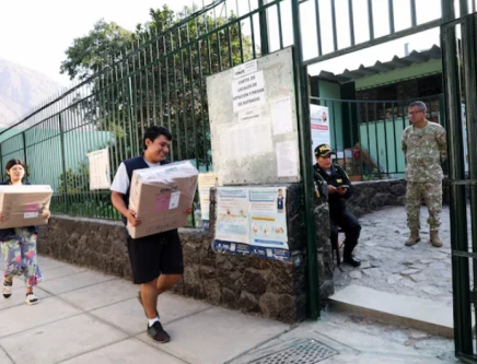 Peruvian electoral workers distribute voting materials to polling stations, as police and military personnel stand guard, ahead of the April 12 general election, in Lima, Peru, April 11, 2026. PHOTO: REUTERS