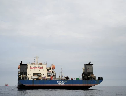 A vessel at the Strait of Hormuz, off the coast of Oman’s Musandam province, April 12, 2026. PHOTO: REUTERS