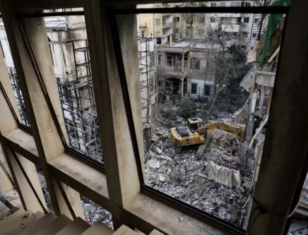 Heavy machinery operates at the site of an Israeli strike carried out on Wednesday, in Ain Al Mraiseh in Beirut, Lebanon, April 9, 2026. PHOTO: REUTERS
