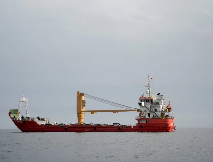 A vessel at the Strait of Hormuz, off the coast of Oman’s Musandam province, April 12, 2026. PHOTO: REUTERS