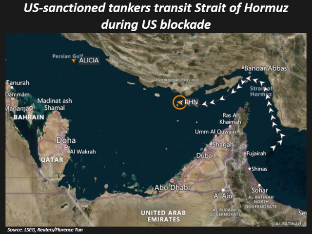 The tanker's entry into the Gulf comes a day after the US-sanctioned VLCC Alicia passed through the Strait of Hormuz. Alicia is heading to Iraq, Kpler data showed.