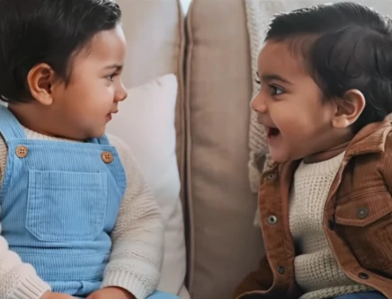 The teaser opens with a sequence featuring two AI-generated toddlers discussing their parents and hinting at a romantic complication involving shared fatherhood but different mothers, setting the film’s central conflict.