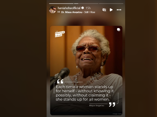 Taking to Instagram, Hania posted a story featuring Maya Angelou’s powerful quote: “Each time a woman stands up for herself without knowing it, possibly, without claiming it, she stands up for all women.”