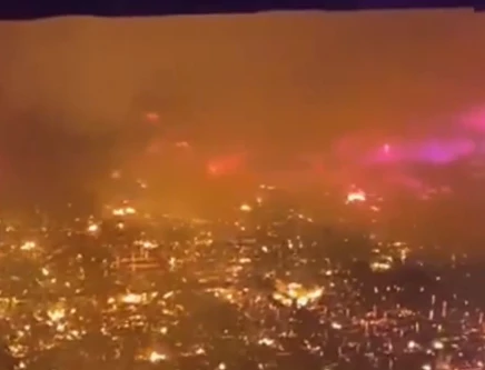 Fire in the coastal village of Kampung Bahagia, Sandakan, Sabah, Malaysia. Screenshot of a video still. PHOTO: X
