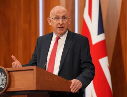 Britain's Defence Secretary John Healey delivers statement at 9 Downing Street in Britain on April 9, 2026. PHOTO: REUTERS