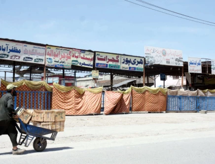 A man pushes a wheelbarrow past a bus terminal temporarily shut by authorities over security concerns. PHOTO: ONLINE