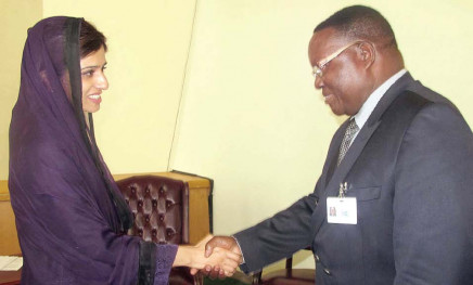 Foreign Minister Hina Rabbani Khar held bilateral meetings with her counterparts from Guinea and the Central African Republic on the sidelines of the of the United Nations (UN) General Assembly on Saturday. During the meetings, the foreign ministers discussed ways to enhance political, diplomatic and economic relations between their respective countries and increase mutual visits by business communities. They also exchanged views on promoting political and diplomatic cooperation at all international forums, including the UN.