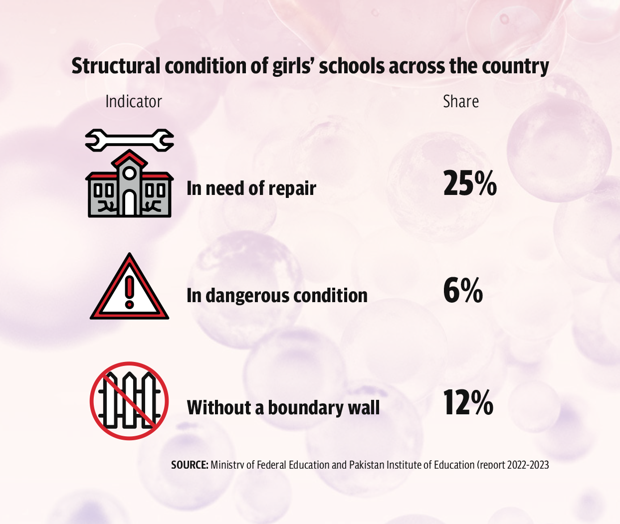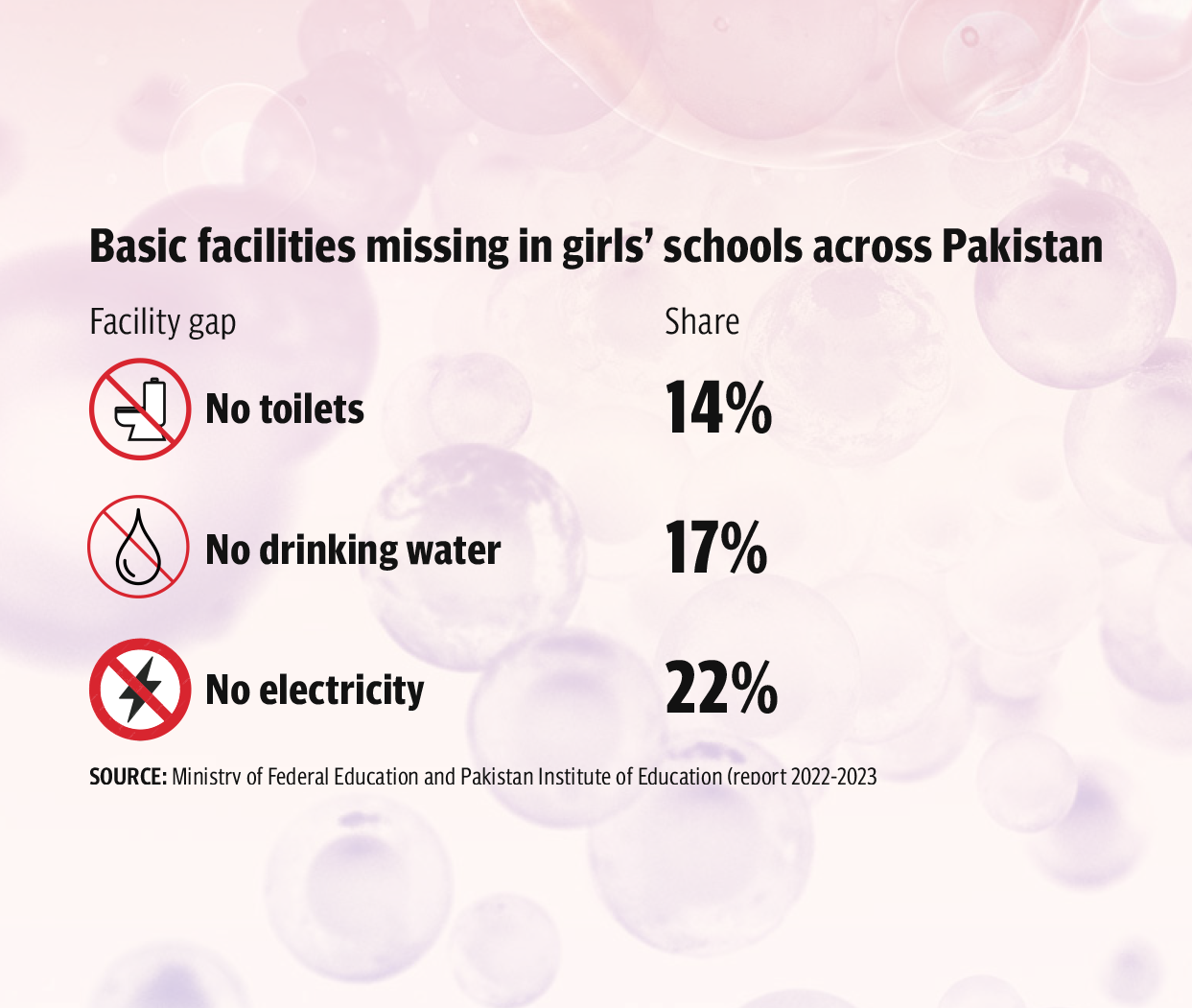“Menstruation is not a personal issue; it is a public health problem,” said Mahnoor Omer. Yet, schools across the country remain unequipped to treat it as such. According to the Ministry of Federal Education and Pakistan Institute of Education (PIE) report 2022-2023 (2024), 14% of girls’ schools lack toilets, 17% have no drinking water, and 22% operate without electricity. One in four requires major repairs, and many lack boundary walls, compromising privacy. In this context, menstruation becomes a monthly disruption that schools are structurally unprepared to accommodate.