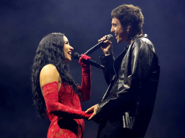 Both singers performed facing each other and smiled throughout the performance, marking their first live appearance together on stage.