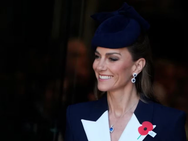 She completed the look with meaningful jewelry, including sapphire earrings once worn by Princess Diana and a tanzanite necklace believed to be a gift from Prince William. The accessories added a personal and historical layer to the outfit, a signature element of Kate’s public appearances.