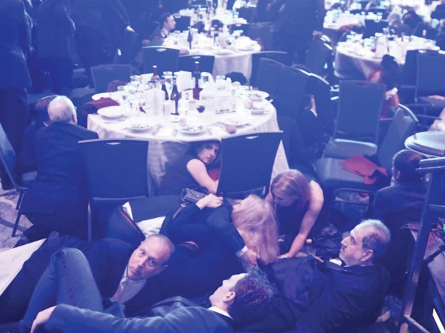 As the gunfire began shortly after 8:30pm, attendees - including journalists, photographers and television figures - took cover under tables while Secret Service agents rushed officials to safety. Several reporters posted real-time updates on social media, describing a "lockdown in the ballroom" and scenes of confusion.