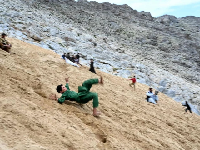 Hundreds of visitors travel each weekend to Reg-e-Rawan -- "the moving sands" in Dari -- to practice parkour or roll down the honey-coloured sand in Kapisa province.