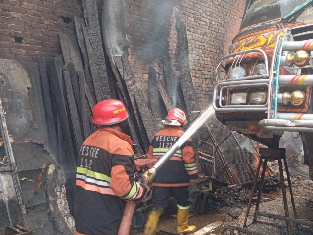 According to Rescue 1122, a call was received about a fire at a bus stand in Shibli Town’s Pump Wala Bazaar, following which rescue personnel and emergency vehicles reached the site.