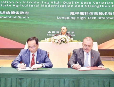 Memon said cooperation between the Sindh Local Government Department and a Chinese company in the field of agricultural technology is highly encouraging for Sindh's economy.