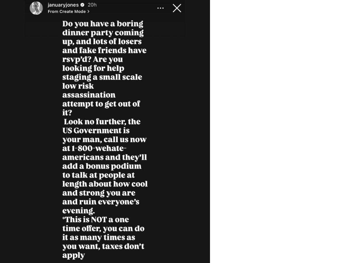 January Jones mocks White House Dinner shooting with 'staged assassination' hotline post