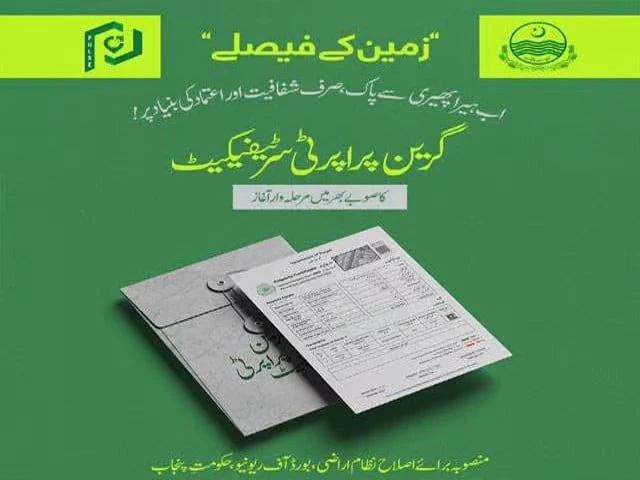 Preparations have been completed to launch the "Green Property Certificate" system at the Rawalpindi Land Record Centre next week under the Punjab Land Record Authority and Board of Revenue.