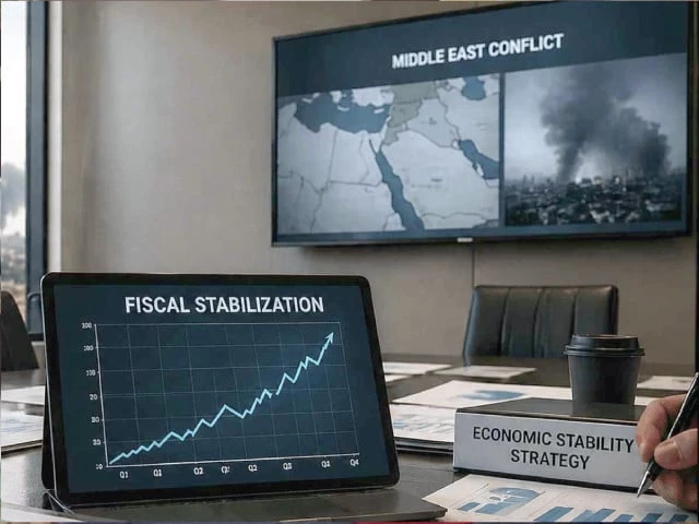 Finance Minister Muhammad Aurangzeb has said that the government would stay on the path of fiscal stabilisation despite the Middle East conflict that Pakistan's economy is poised to grow 4% this fiscal year despite the ongoing Middle East conflict, as he urged European investors to explore opportunities in the country.