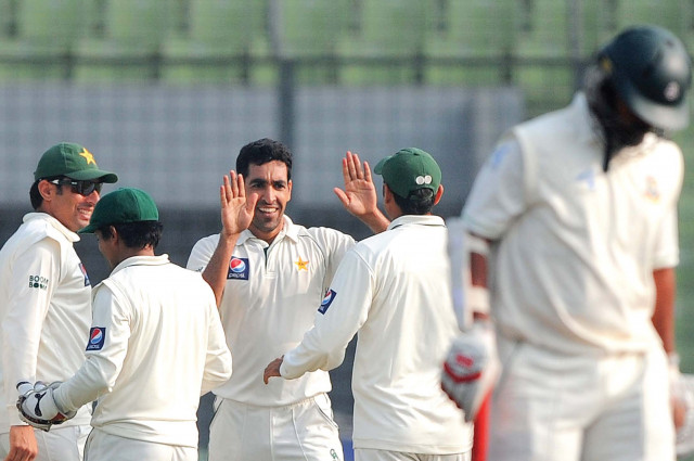 Earlier, Gul dismissed free-scoring Tamim Iqbal (21) and Shahriar Nafees with his last two balls before the tea break. Tamim, who hit Cheema for three fours in an over, looked surprised when adjudged caught by captain Misbahul Haq at first slip while attempting to hook Gul, as TV replays suggested the ball had come off the helmet.