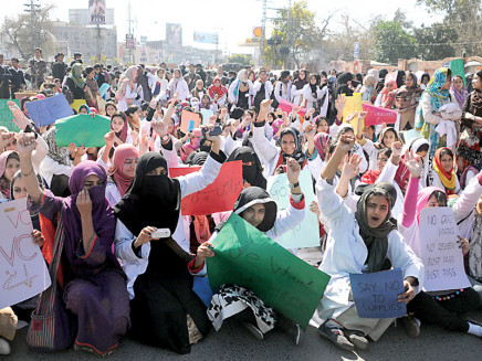 Later, about 300 RMC students gathered before Rawalpindi Press Club and chanted slogans against the UHS administration and its vice chancellor, Dr Mubashir Malik.