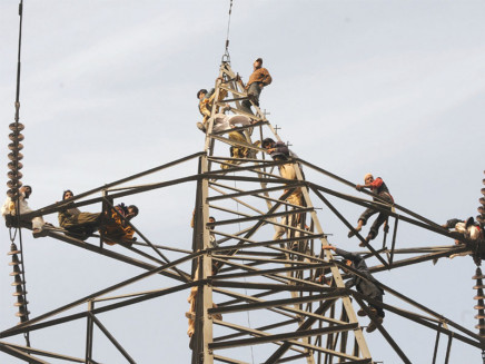 The Lahore Electric Supply Company suspended electricity supply to the area in the afternoon after dozens of people had climbed up the pylon.