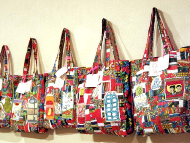 A number of foreigners came at the exhibit, admiring not only the tapestries but also the cute ballerina pumps embroidered with toes and handbags complete with threadwork on each side.