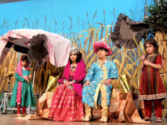 Schoolchildren perform a tableau at the Bloomfield Hall School. PHOTO: MUHAMMAD JAVAID/EXPRESS