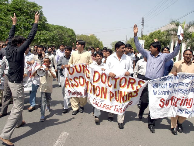 Earlier on Saturday, young doctors joined hands with patients at the Punjab Institute of Cardiology (PIC) and protested against the administration. The patients demanded that they be provided free medicines, which they had not been getting for several weeks. The protest continued for around an hour, after which the PIC administration purchased medicines and gave them to the patients.