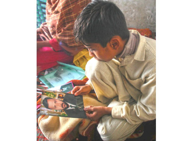 Victim Akmal’s son looks at a photograph of his father, the only breadwinner in the family. PHOTO: ATHAR KHAN/EXPRESS