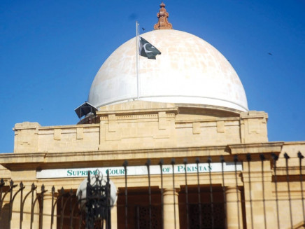 The flag flies at half-mast at the Supreme Court registry in Karachi following two bomb blasts at Abbas Town. Courts (below) wore a deserted look as lawyers boycotted all legal proceedings on Monday. PHOTO: PPI/EXPRESS