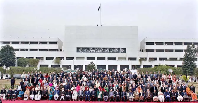 Group photo of the National Assembly of Pakistan upon completion of their five year term. PHOTO: APP/FILE