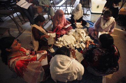 Election workers count ballots after polls closed for general elections in Karachi May 11, 2013. PHOTO: REUTERS
