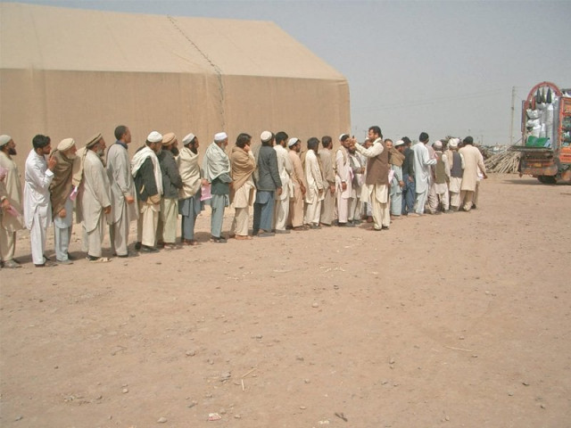 Due to the sheer number of people at Jalozai camp, IDP’s have to wait for hours to receive rations and supplies. PHOTO: EXPRESS