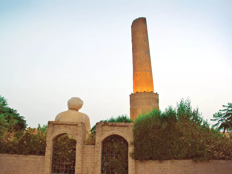 The 38-metre high Minaret of Madrasat al-Muzaffar built in the 12th century Seljuk style.
