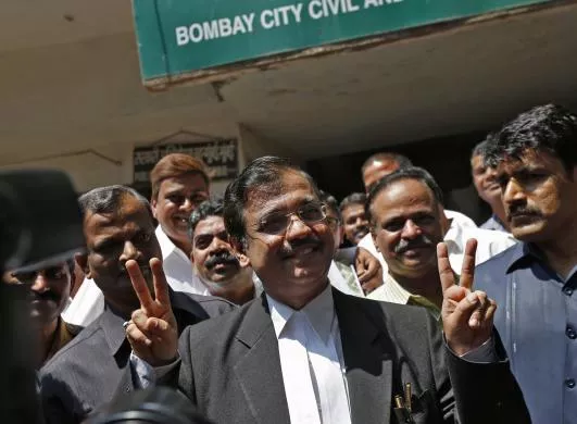 Prosecution lawyer Ujjwal Nikam gestures after four men were found guilty of the gang-rape of a photojournalist, outside a court in Mumbai March 20, 2014. PHOTO: REUTERS