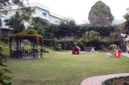 On the front side of the plot, a parking area has been developed, behind which there is a lawn. The estimated value of the plot is over a hundred million rupees.