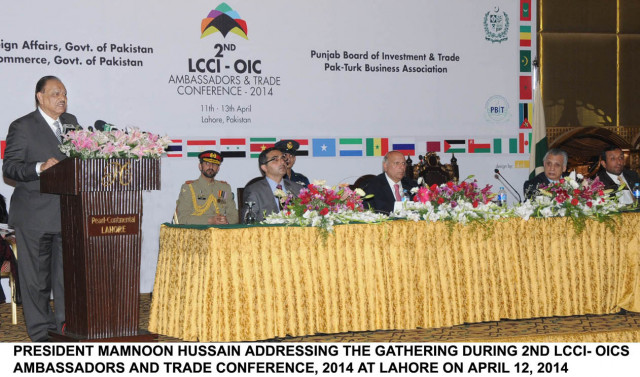 President Mamnoon Hussain addressing the 2nd LCCI-OIC ambassadors and trade conference in Lahore on Saturday. PHOTO: PID