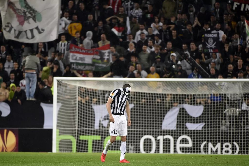 Juventus' defender Giorgio Chiellini reacts at the end of the UEFA Europa League semifinal football match Juventus vs Benfica on May 1st, 2014 at the Juventus Stadium in Turin. PHOTO: AFP
