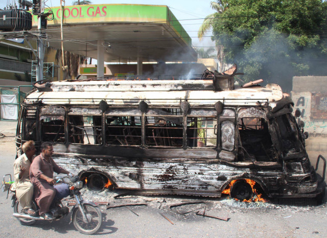 The law enforcement agencies were deployed in most parts of the city but unidentified men managed to torch 16 vehicles, including public buses and some cars. These cases were reported from Gulzar-e-Hijri, Abul Hassan Ispahani Road, Federal B Area, Korangi, Samanabad and Landhi. “Our jawans have already been on high alert,” said a senior Rangers official. “It is the right of every party to stage a protest but in a rightful way.”