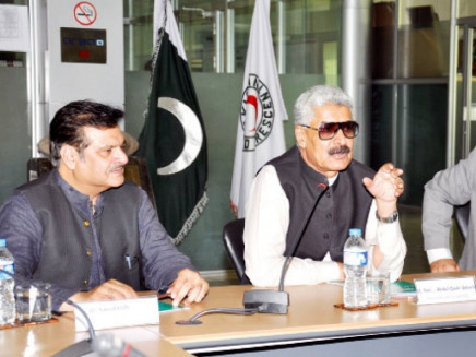 In a detailed briefing to the minister, PRCS Secretary General Dr Mahboob Sardar said that the society was first to reach in the area with its volunteers, doctors and ambulances and provided food, clean drinking water and medical cover to 22,000 IDPs. He said the PRCS is providing 24,000 food pack of 120kg each for three months for 60,000 individuals that will cost Rs400 million.