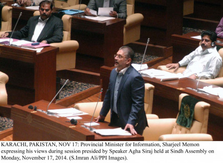 In addition to this, the Speaker Agha Siraj Durrani referred the Sindh Medical and Dental Council Bill 2014 to the standing committee for review. The standing committee will send it back within two weeks when it will be taken up again by the assembly. Meanwhile, the Sindh School Education Standard and Curriculum Bill and the Postgraduate College for Medical Science Sindh Bill were introduced in the Assembly.