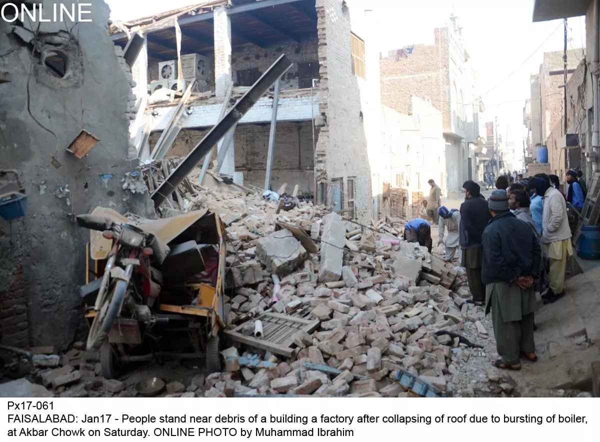 Muhammad Ismaeel, a factory worker, told newsmen that it exploded due to a high steam pressure. He said no boiler engineer was present at the time. After the explosion, panic ensued in the area and a number of people rushed to the factory. Rescue 1122 officials said Muhammad Tahir, Majeed Abbas, Muhammad Asif and Noor Ahmad died on the spot.Rescue teams took Muhammad Waheed, Muhammad Waqas, Kashif Rasheed and Muhammad Umar to Allied Hospital where doctors said Kashif’s condition was serious.