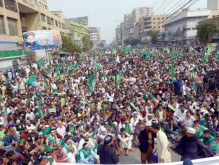 "I believe this is the biggest protest yet on the issue, with 25,000 to 30,000 people in attendance," Aziz Bhatti SHO Abbas Kolachi told The Express Tribune. "We have made fool-proof security arrangements accordingly."