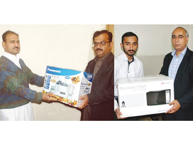 In Lahore, editor of the editorials at Daily Express, Latif Chaudhry presented the gift to Mehboobur Rehman. And in Peshawar, chief reporter Daily Express Shahid Hameed handed over the prize to Yousuf Khan.