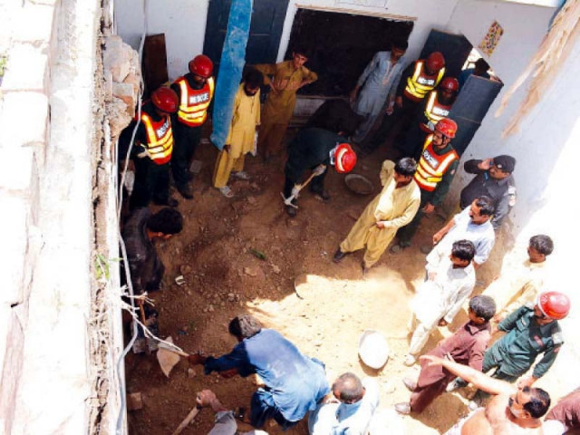 Rescue workers clear out debris from the school. PHOTO: EXPRESS