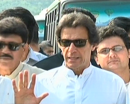 Express News screengrab of PTI chief on May 18, 2015 in Islamabad.