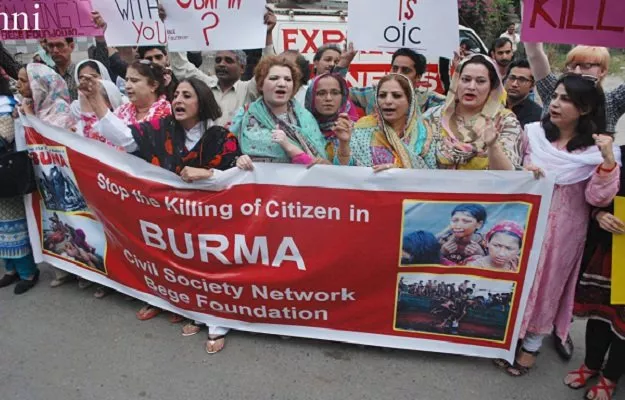 Civil Society protesting against the killing of muslims in Myanmar. PHOTO: EXPRESS