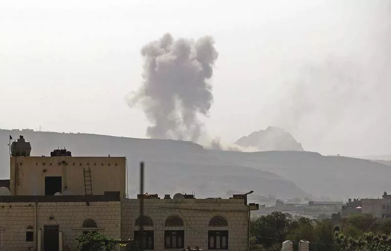 Smoke billows following an air-strike by the Saudi-led coalition on an army arms depot, now under Houthi rebel control. PHOTO: AFP