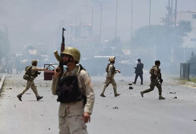 Afghan security personnel take position at the site of an attack in front of The Parliament Building in Kabul on June 22, 2015. PHOTO: AFP