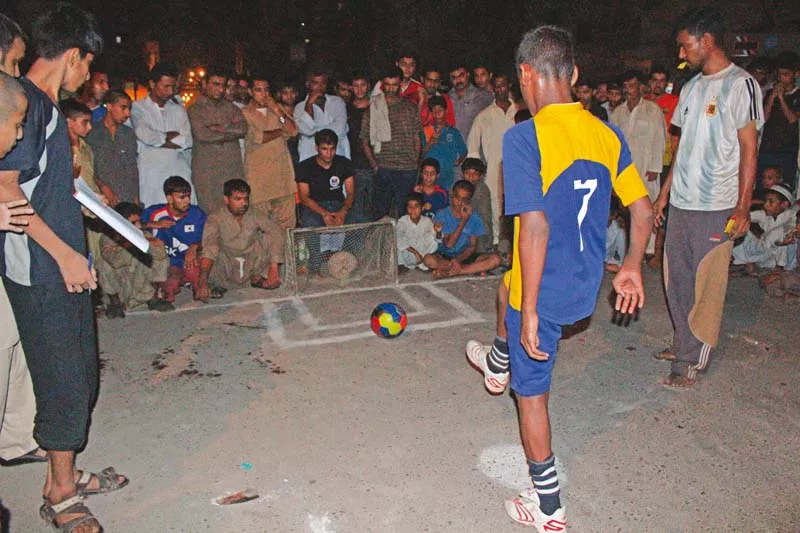 Football remains the most popular street game played during the night in Lyari. PHOTO COURTESY: DILSHAR BALOCH