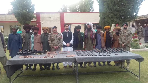 Meanwhile, two commanders of a proscribed militant outfit laid down their arms before FC officials in Loralai district on Thursday.